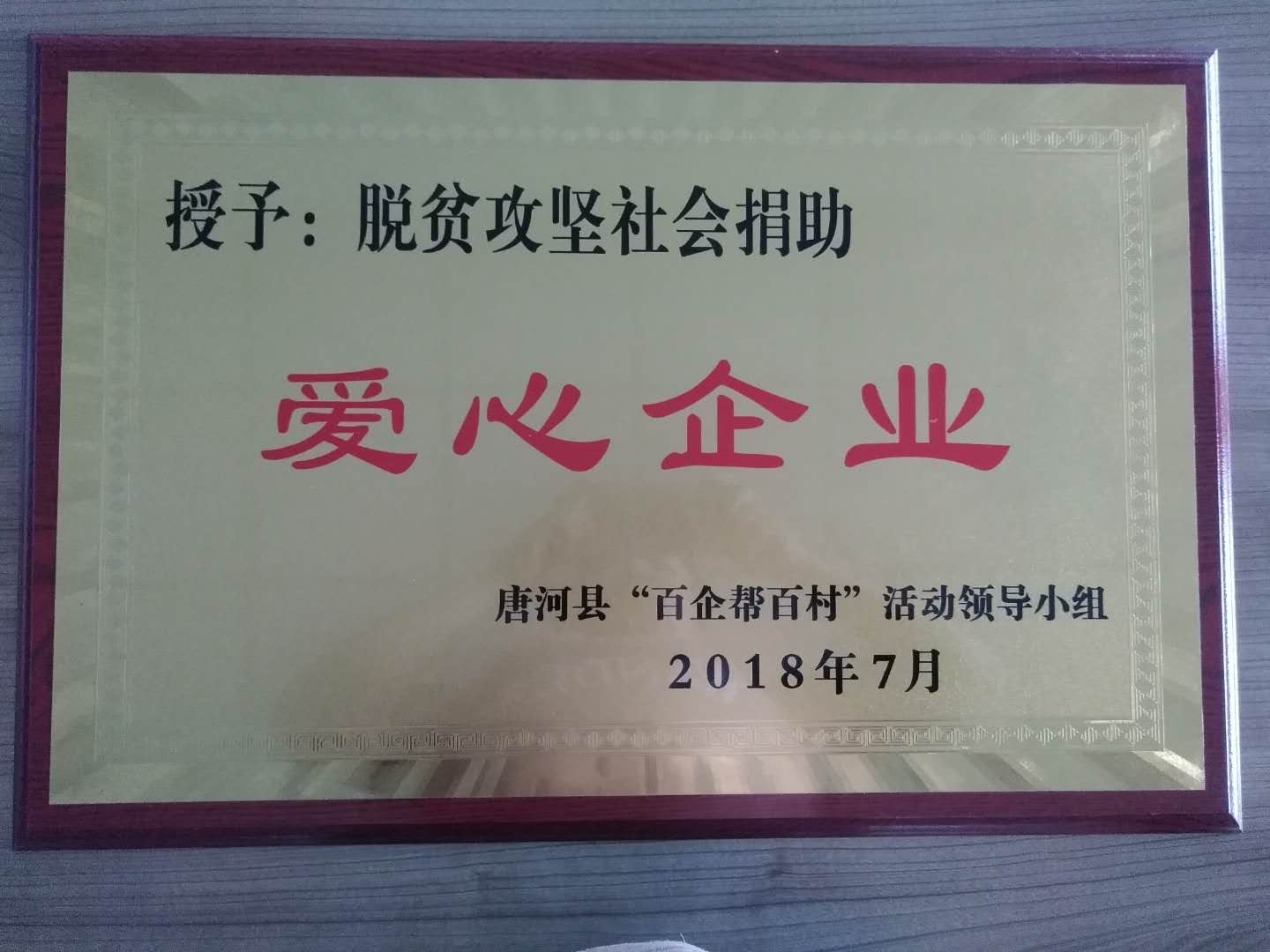 7月9日上午,在唐河縣召開的南陽市社會扶貧工作現場會上,亞澳南陽農機有限責任公司被唐河縣委縣政府授予脫貧攻堅社會捐助“愛心企業”。