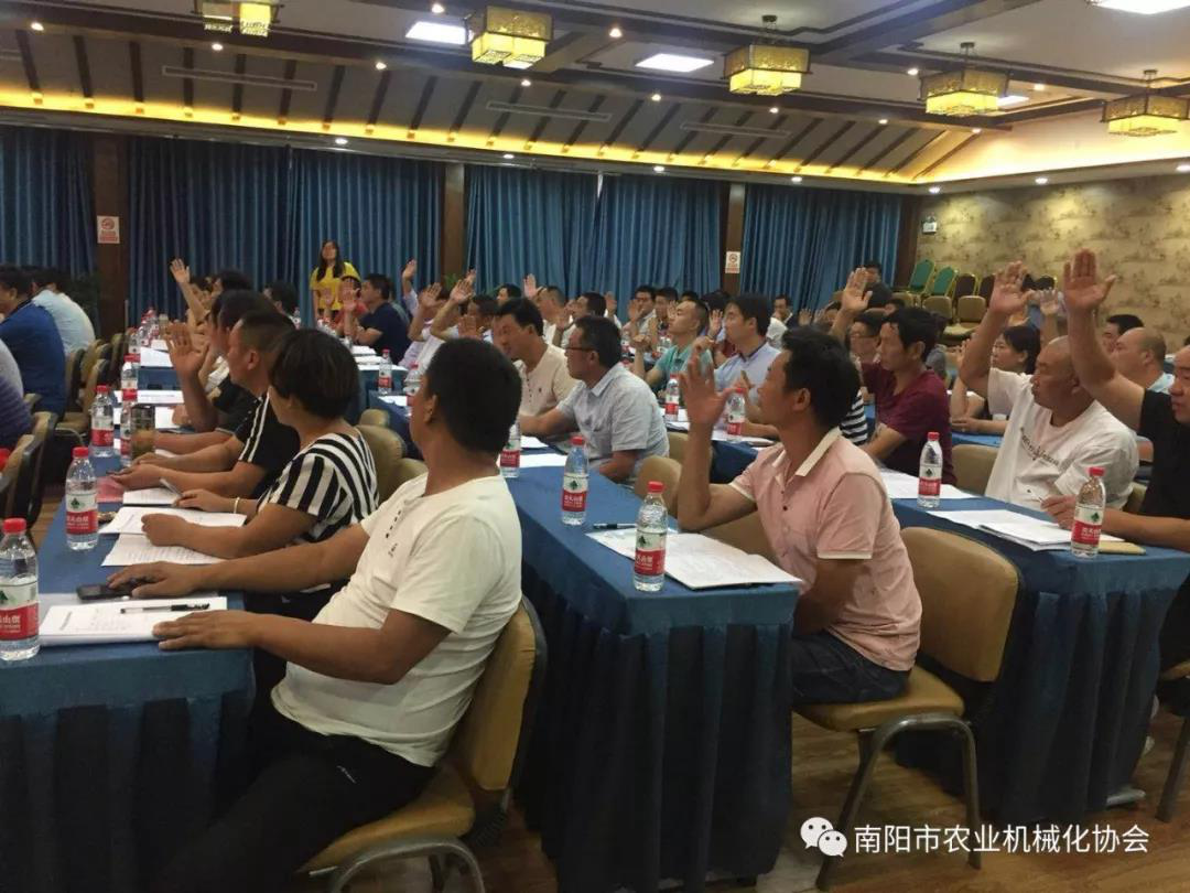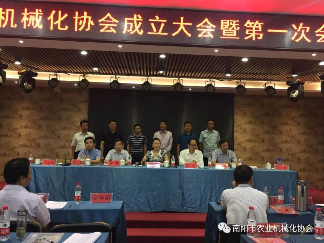 7月3日,南陽市農業機械化協會成立大會在南陽市鷗凱印象酒店3樓會議室召開,南陽市農業機械化管理局黨組書記、局長劉勤同志出席會議并做重要講話。選舉通過田云鎖(原南陽市農業機械公司總經理)同志當選為會長,亞澳南陽農機有限責任公司總經理史炳哲、南陽奇豐機械有限責任公司董事長趙順奇、鎮平縣糧豐農機農民專業合作社理事長薛云濤當選為副會長。