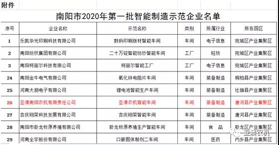 根據(jù)《河南省智能制造和工業(yè)互聯(lián)網(wǎng)發(fā)展三年行動(dòng)計(jì)劃(2018—2020年)》(豫政〔2018〕14號(hào))文件要求,南陽(yáng)市篩選出的A類企業(yè)名單,是符合集聚區(qū)產(chǎn)業(yè)發(fā)展方向、資源利用效率高、質(zhì)量效益好的企業(yè),是轉(zhuǎn)型發(fā)展攻堅(jiān)的引領(lǐng)力量,也是最有條件和能力實(shí)施智能化改造的先導(dǎo)群體。將作為河南省產(chǎn)業(yè)集聚區(qū)首批智能化改造推薦企業(yè)。